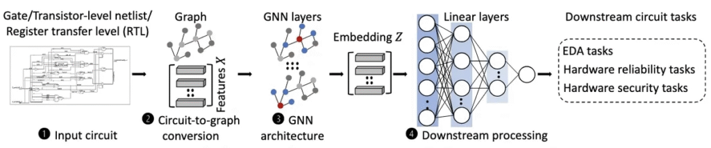 I am interested in solutions that leverage graph neural networks (GNNs) to model data with inherent graph-like structures. My research investigates the use of GNNs in advancing integrated circuit design, reliability, and security.